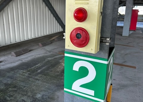 立体駐車場の看板です。出入口を明確にすることで安全と効率をはかります。